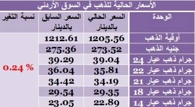 25ر34 دينار سعر غرام الذهب في السوق المحلية