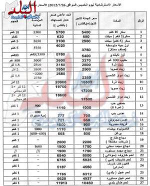 نشرة «الصناعة والتجارة» لاسعار السلع