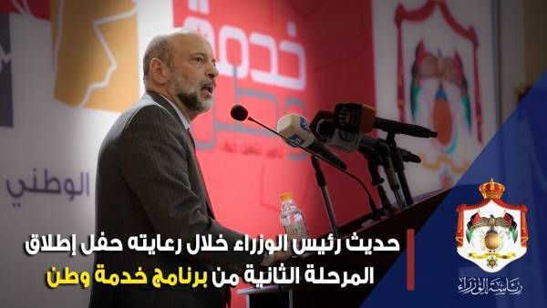 حديث رئيس الوزراء الدكتور عمر الرزاز خلال رعايته إطلاق الدفعة الثانية من برنامج خدمة وطن