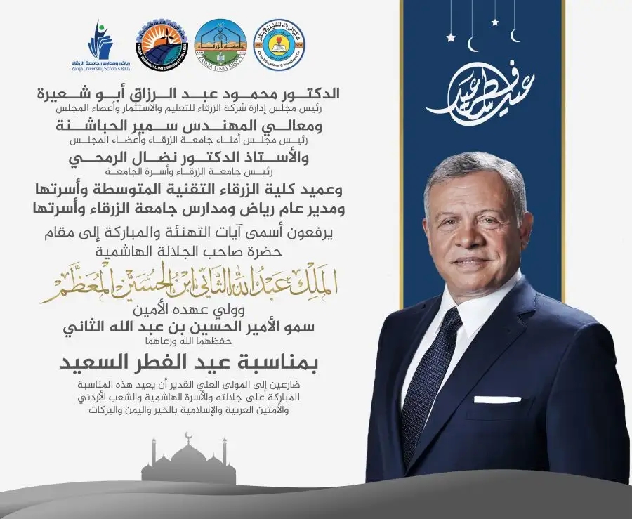 جامعة الزرقاء تهنئ الملك والأسرة الهاشمية