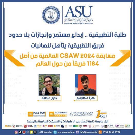 فريق جامعة العلوم التطبيقية يتأهل لنهائيات مسابقة CSAW 2024 العالمية من أصل 1184 فريقاً من حول العالم
