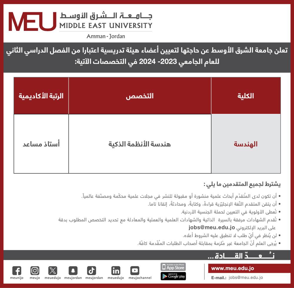 شاغر أكاديمي في جامعة الشرق الأوسط