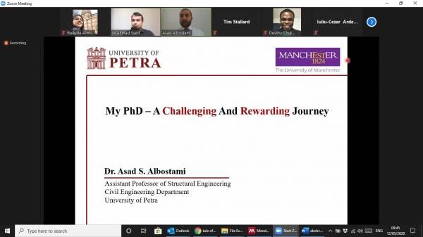 مؤتمر الهندسة الميكانيكية والفضائية والمدنية بجامعة مانشستر البريطانية يستضيف أستاذ الهندسة المدنية بجامعة البترا البسطامي