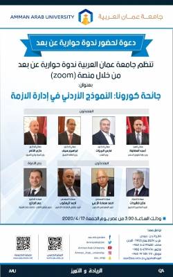 "النموذج الاردني في إدارة أزمة الكورونا" ندوة لـ"عمان العربية" عن بعد