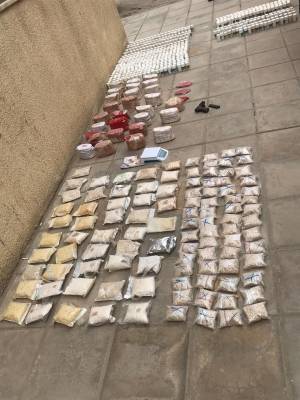 ضبط كميات كبيرة من المواد المخدرة بمداهمات لادارة مكافحة المخدرات في البادية الشمالية .
