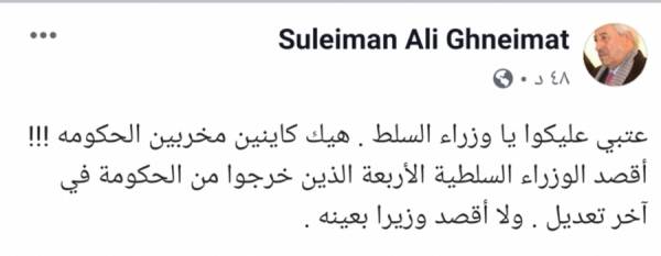 والد وزيرة الاعلام السابقة الغنيمات " عتبي عالسلطية مخربين الحكومة "..؟