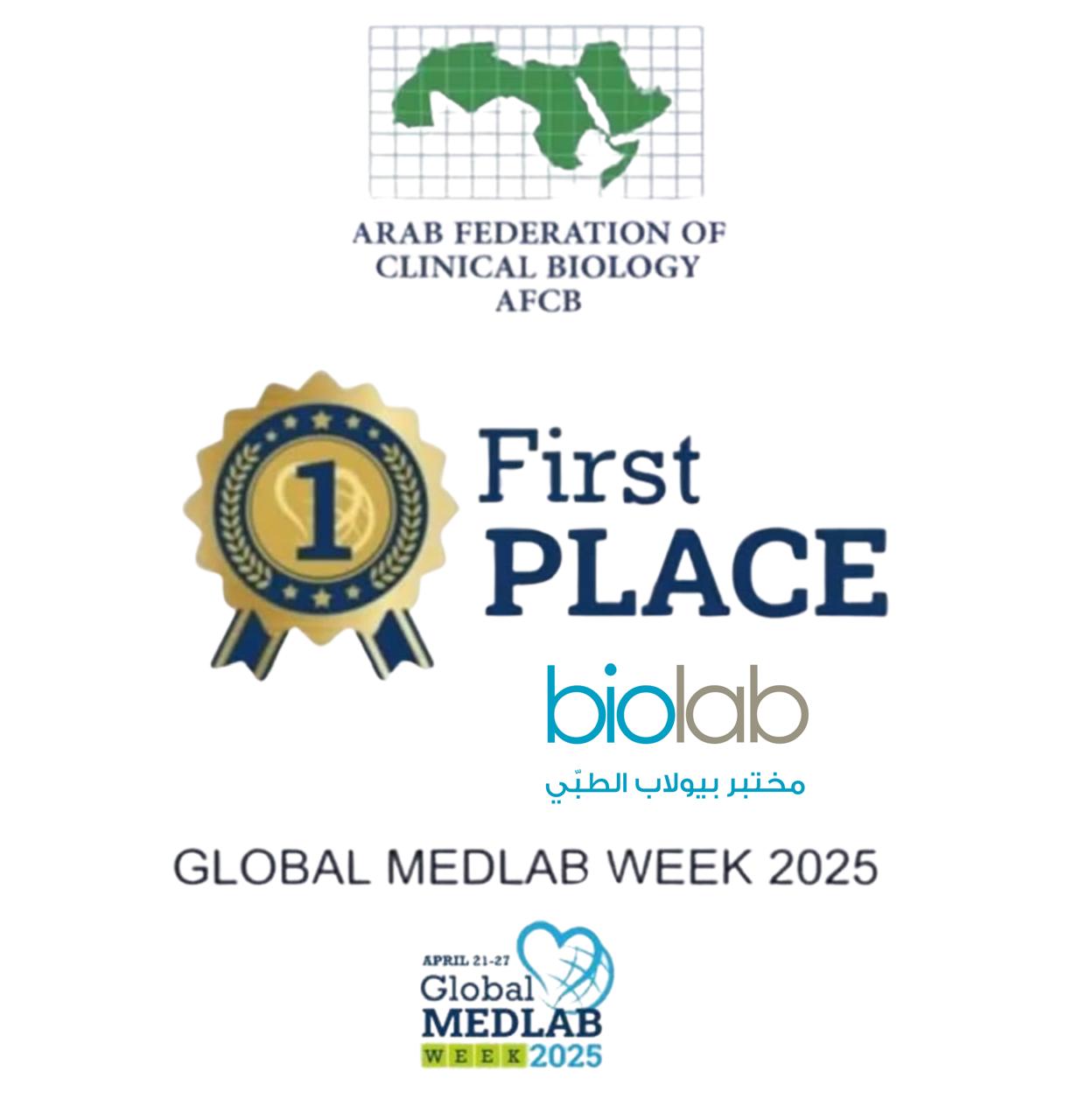 مختبر بيولاب الطبي يحصد المركز الأول في مسابقة الاتحاد الدولي للكيمياء السريرية والطب المخبري