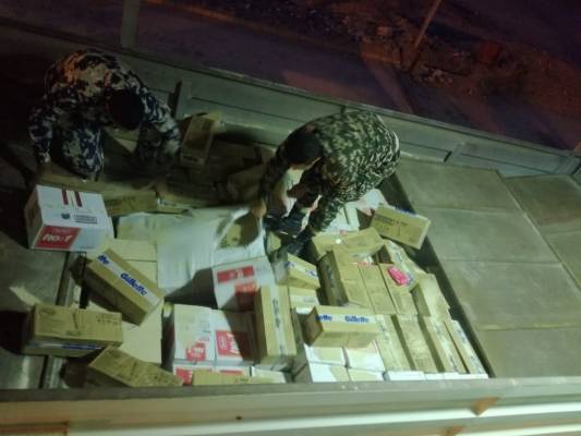 "الجمارك" تحبط تهريب البسة وبضائع في (قلاب) مصفح بالعقبة .. صور
