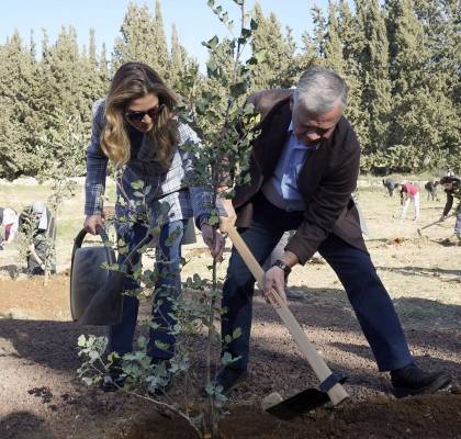 الملك والملكة يشاركان بغرس الأشجار في غابة الكمالية