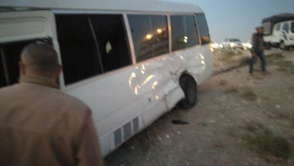 سبعة اصابات بحادث تصادم بين حافلة ركاب" للجمارك" ومركبة ..صور