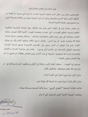 مجلس عشائر اربد :يعلن دعمه المطلق للاجهزة الأمنية