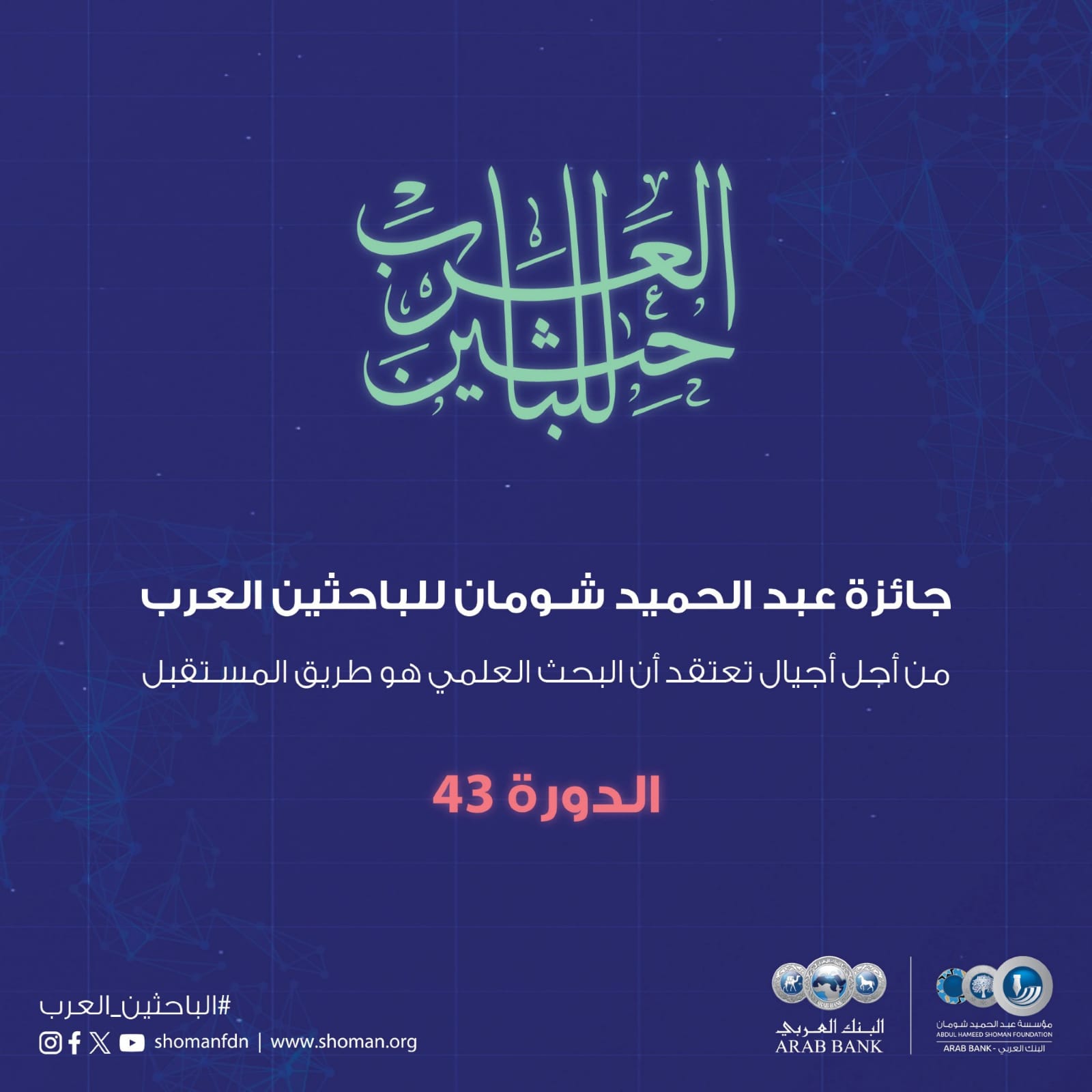 "شومان" تواصل استقبال الطلبات لجائزتها للباحثين العرب للعام 2025