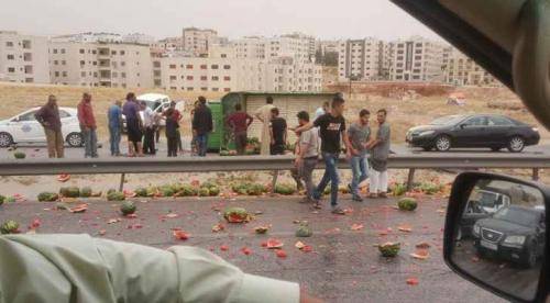 تدهور حافلة محملة بالبطيخ في البيادر (صور)