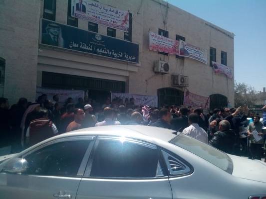 بالصور...معلمو الكرك ومعان يعتصمون رفضا للبصمة وتعديلات "الخدمة المدنية"