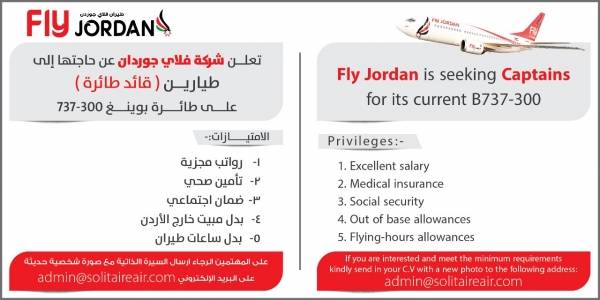 شركة طيران فلاي جوردن تعلن عن وظيفة شاغرة