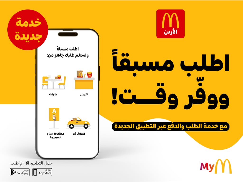 شركة عرموش للاستثمارات السياحية - ماكدونالدز الأردن - تطلق خاصية الطلب والدفع عبر التطبيق لتجربة أكثر سرعة وسهولة