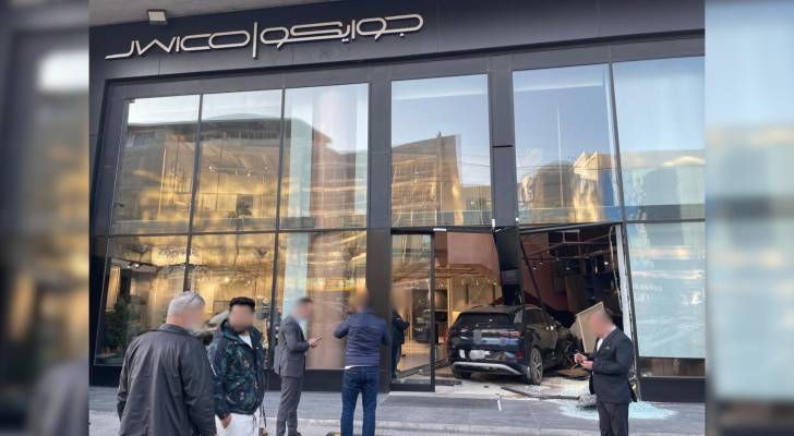 مركبة تقتحم واجهة معرض "جوايكو" في عمان