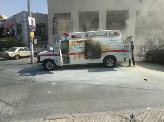 حريق مركبة اسعاف في شارع الجامعة الاردنية (فيديو وصور)