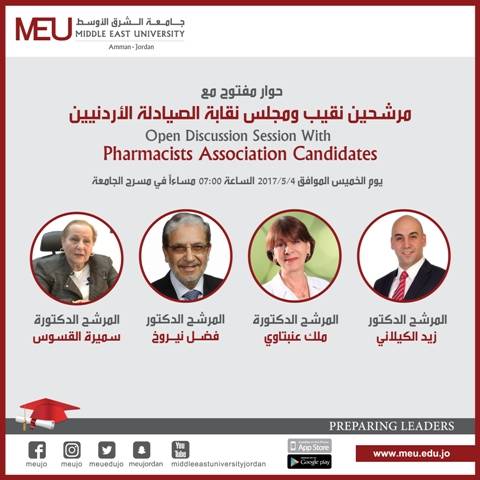 جامعة الشرق الأوسط تستضيف مناظرة بين المرشحين المتقدمين لمنصب نقيب الصيادلة