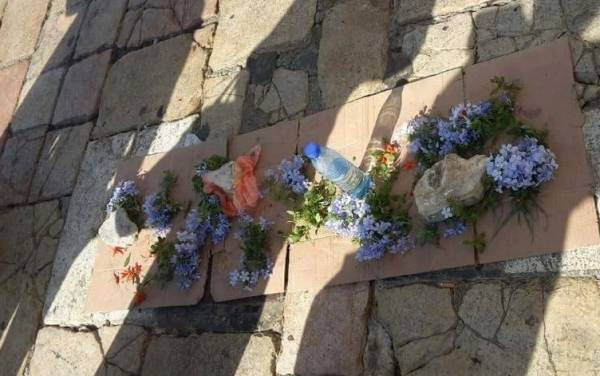 مقدسيون ينثرون الورود في مكان استشهاد الشاب الأردني / صورة