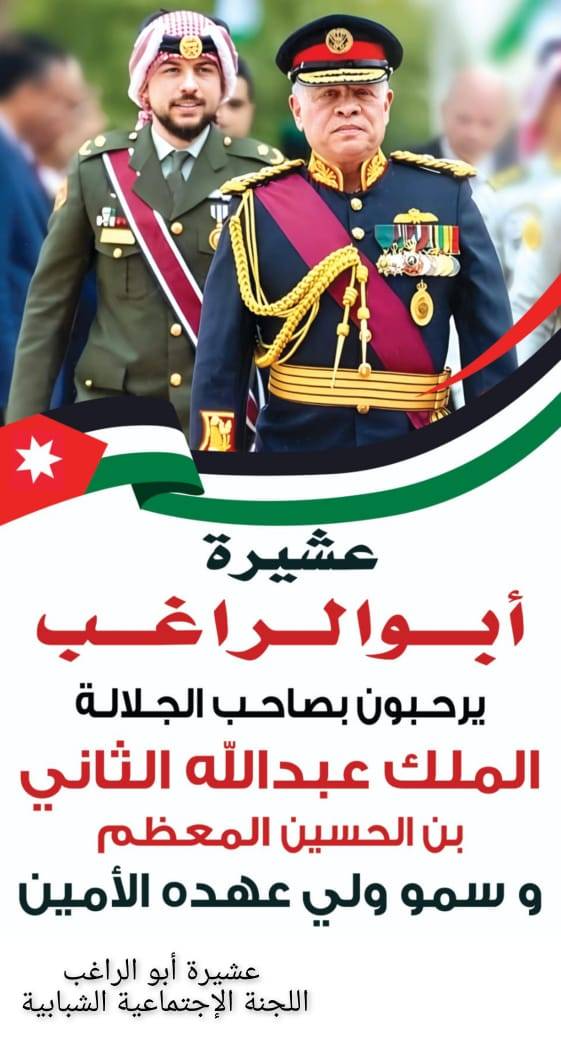 عشيرة أبو الراغب ترحب بزيارة جلالة الملك عبدالله الثاني إلى مدينة السلط بمناسبة اليوبيل الفضي لتوليه العرش