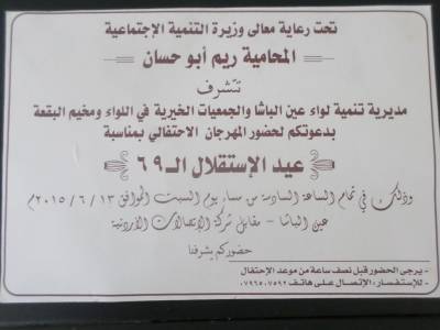 مديرية التنمية الاجتماعية/ عين الباشا تدعو لحضور الاحتفال بعيد الاستقلال