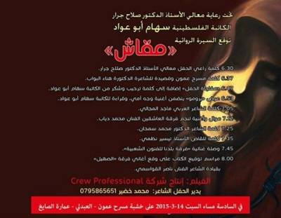 مسرح عمون يحتضن رواية ( مقاش ) للكاتبة الفلسطينية سما أبو عواد