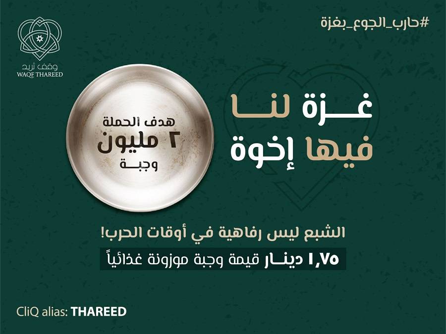 وقف ثريد يطلق الحملة الإغاثية "غزة لنا فيها أخوة" لتقديم 2 مليون وجبة لأهلنا في غزة