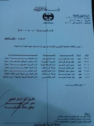 تعينات مدراء جدد لأدارة البحث الجنائي والامن الوقائي وتنقلات هامة في مديرية الامن العام - اسماء