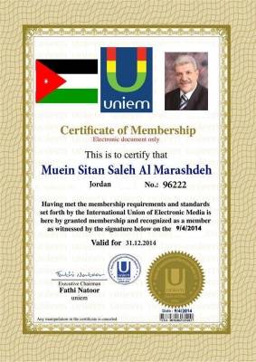 الزميل "المراشده" عضوا في الاتحاد الدولي للاعلام الالكتروني