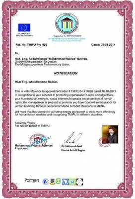 الكاتب "بدران" مديراً عاماً إقليمياً في الإتحاد البرلماني الدولي ...