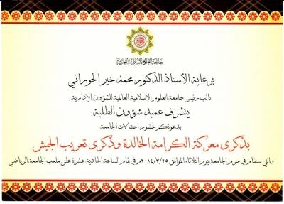 العلوم الاسلامية تحتفل بذكرى الكرامة غداً