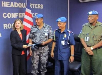 الممثل الشخصي للامين العام للأمم المتحدة في ليبيريا تكرم أحد أفراد قوات الدرك