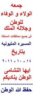 جمعة الولاء والوفاء للوطن وجلالة الملك في جميع محافظات المملكة المسيرة المليونية بتاريخ 14- 10-2011