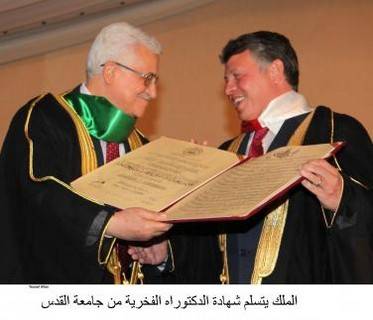 الملك يتسلم شهادة الدكتوراه الفخرية من جامعة القدس