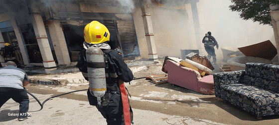 الدفاع المدني يتعامل مع حريق محل لتنجيد السيارات بالزرقاء