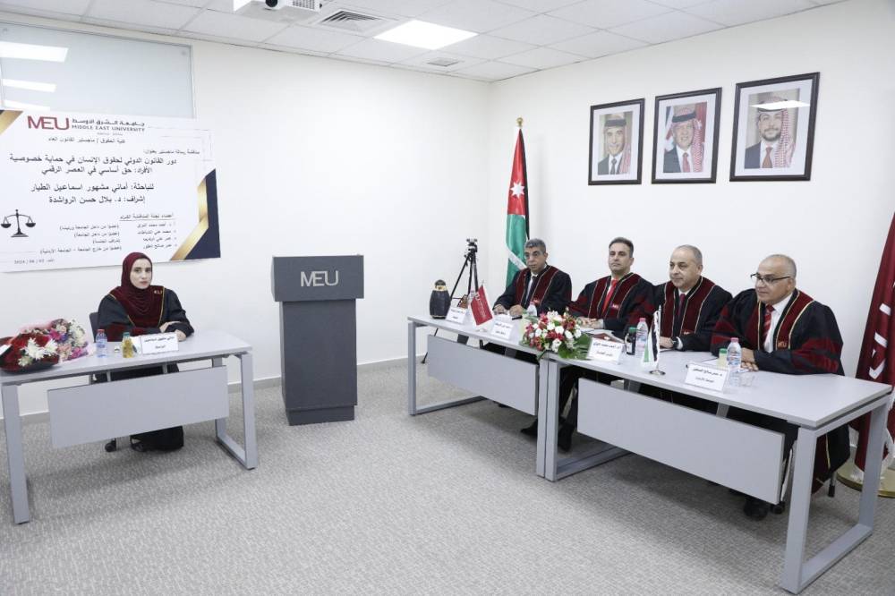 مناقشة رسالة ماجستير في "الشرق الأوسط" بعنوان: دور القانون الدولي لحقوق الإنسان فـي حمایـة خصوصیـة الأفراد: حق أساسي في العصر الرقمي