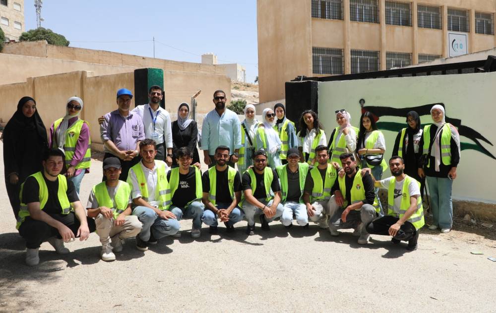 العلم الأردني بريشة طلبة “الشرق الأوسط” يزين جدران مدرسة اللبن الأساسية للبنين