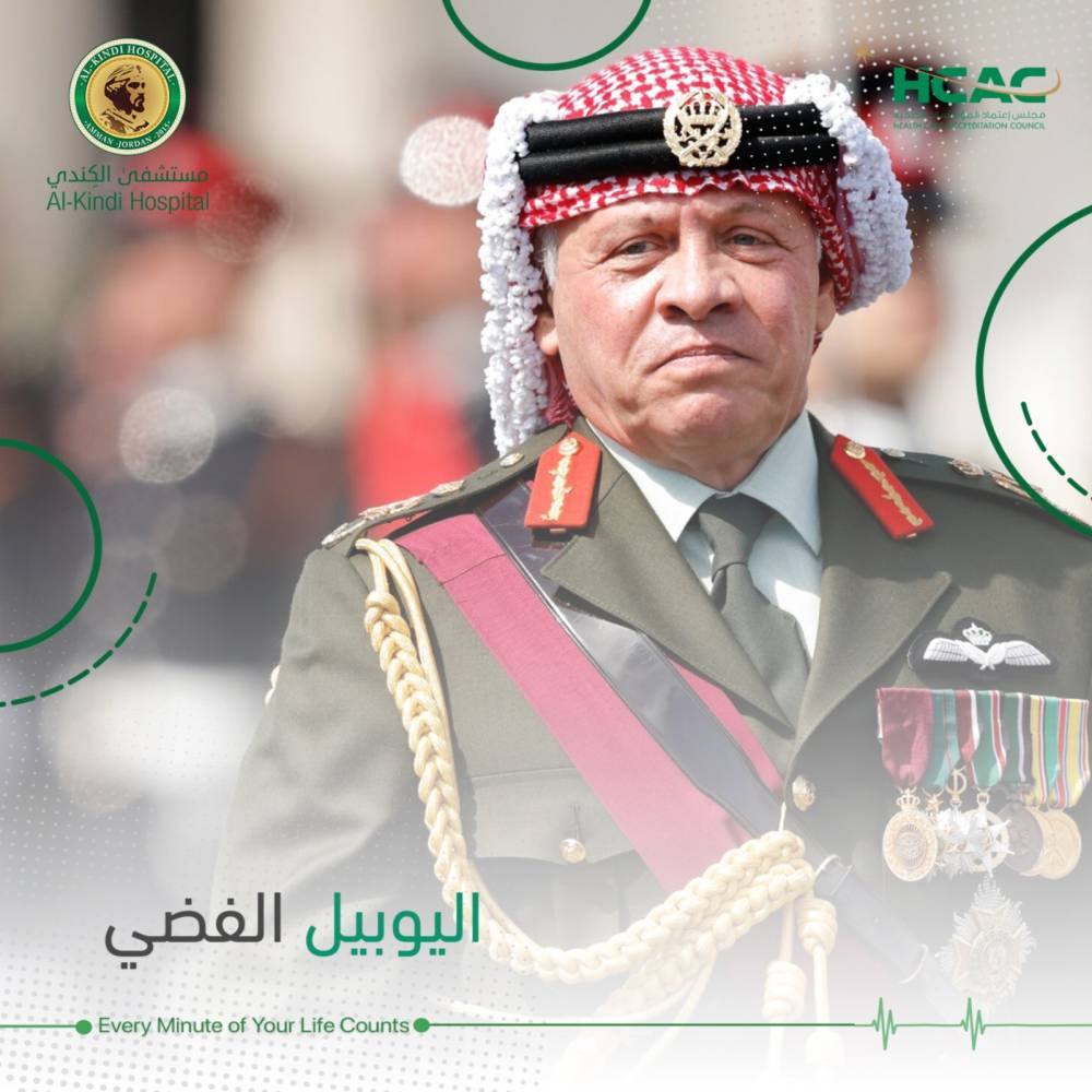 مستشفى الكندي يهنئ بمناسبة اليوبيل الفضي لتولي جلالة الملك سلطاته الدستورية ويوم الجيش والثورة العربية الكبرى