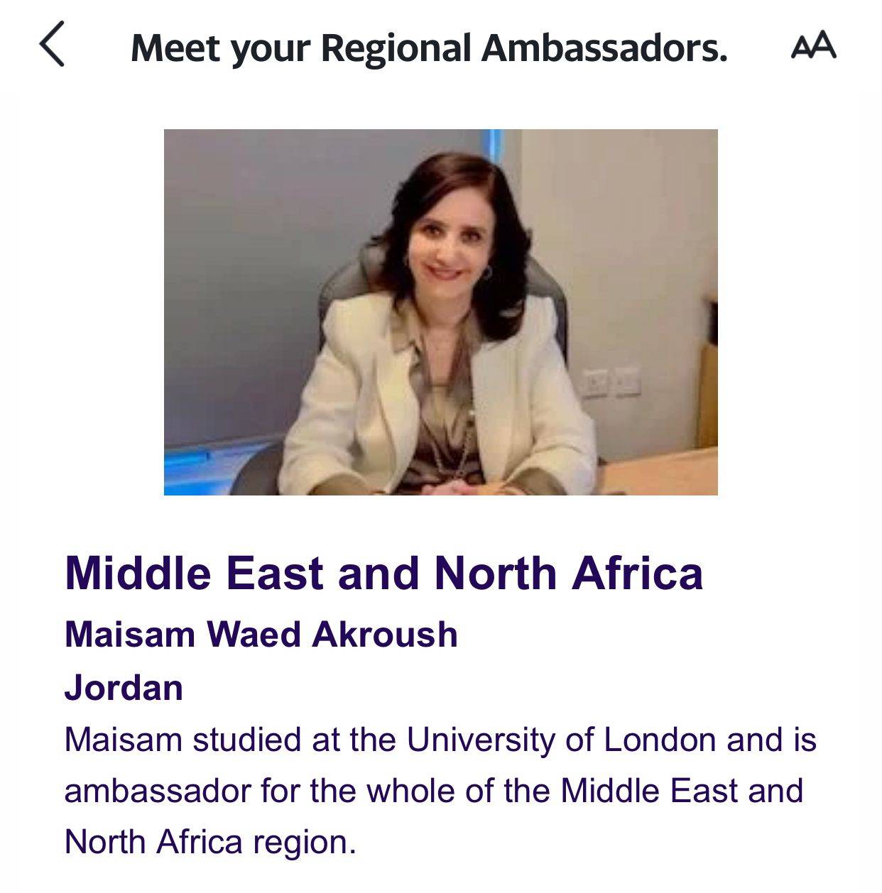 ميسم عكروش سفيرا اقليميا لخريجي المملكة المتحدة