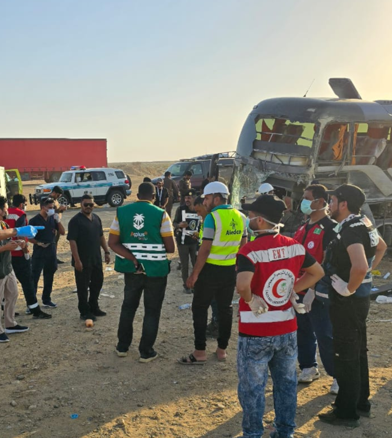 وفاة 14 شخصا بحادث انقلاب حافلة في السعودية - صور