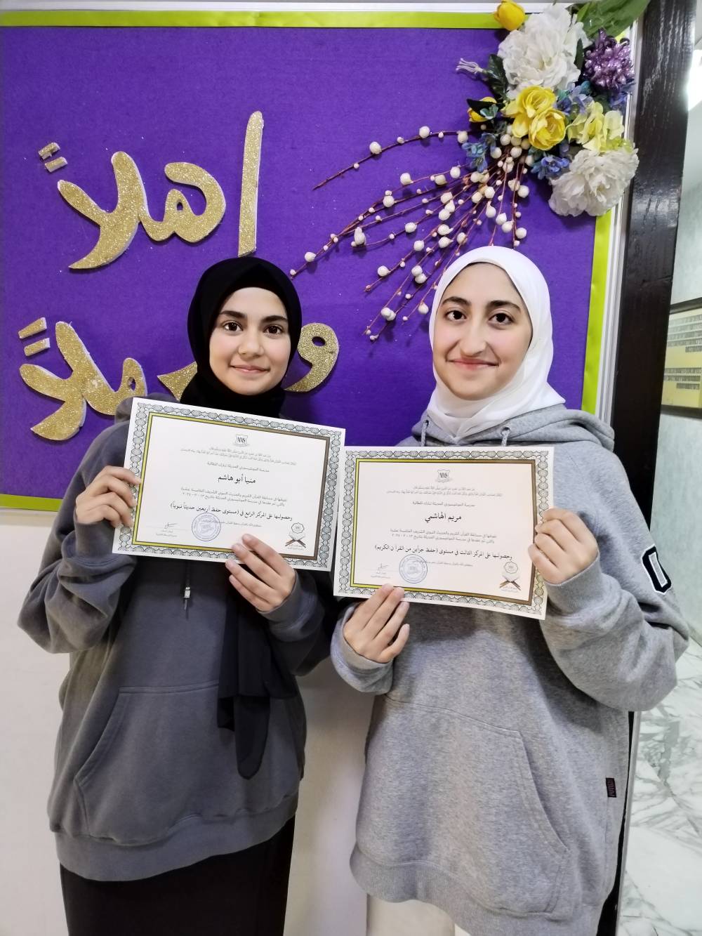 تكريم طالبتين من مدارس النظم لإتقانهما للقرآن والحديث النبوي في مسابقة القرآن والحديث الشريف