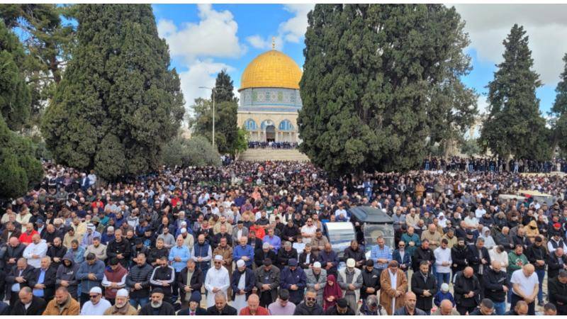 80 ألف مصل أدوا صلاة الجمعة الأولى من رمضان في المسجد الأقصى المبارك