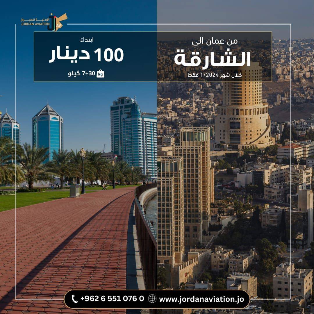 الأردنية للطيران تعلن عن عرض حصري وجديد على خط الشارقة لنهاية شهر 2024/1