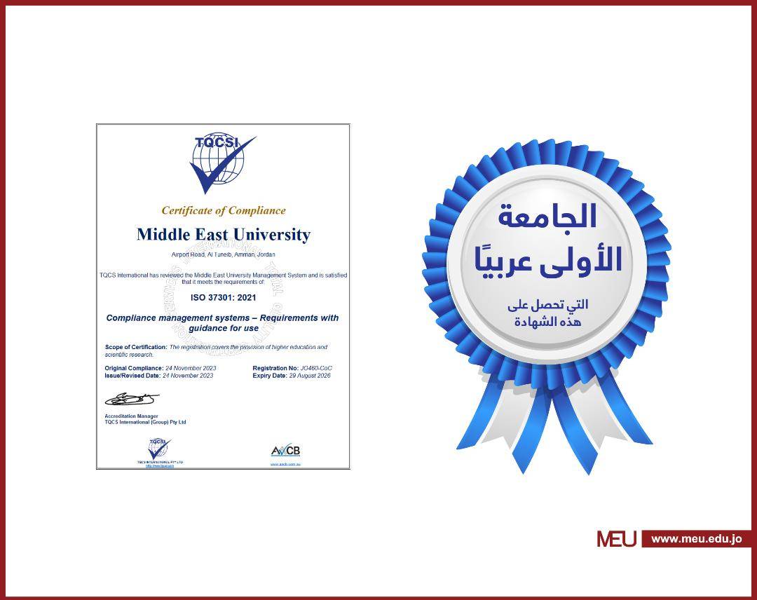 “الشرق الأوسط”… أول جامعة عربية وأردنية تحوز على أيزو الامتثال