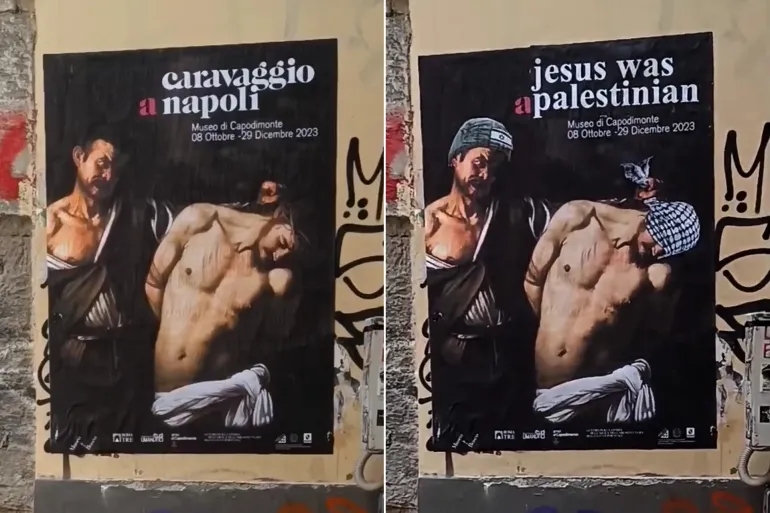 فنان إيطالي يلجأ لطريقة مبتكرة للتضامن مع غزة بشوارع نابولي