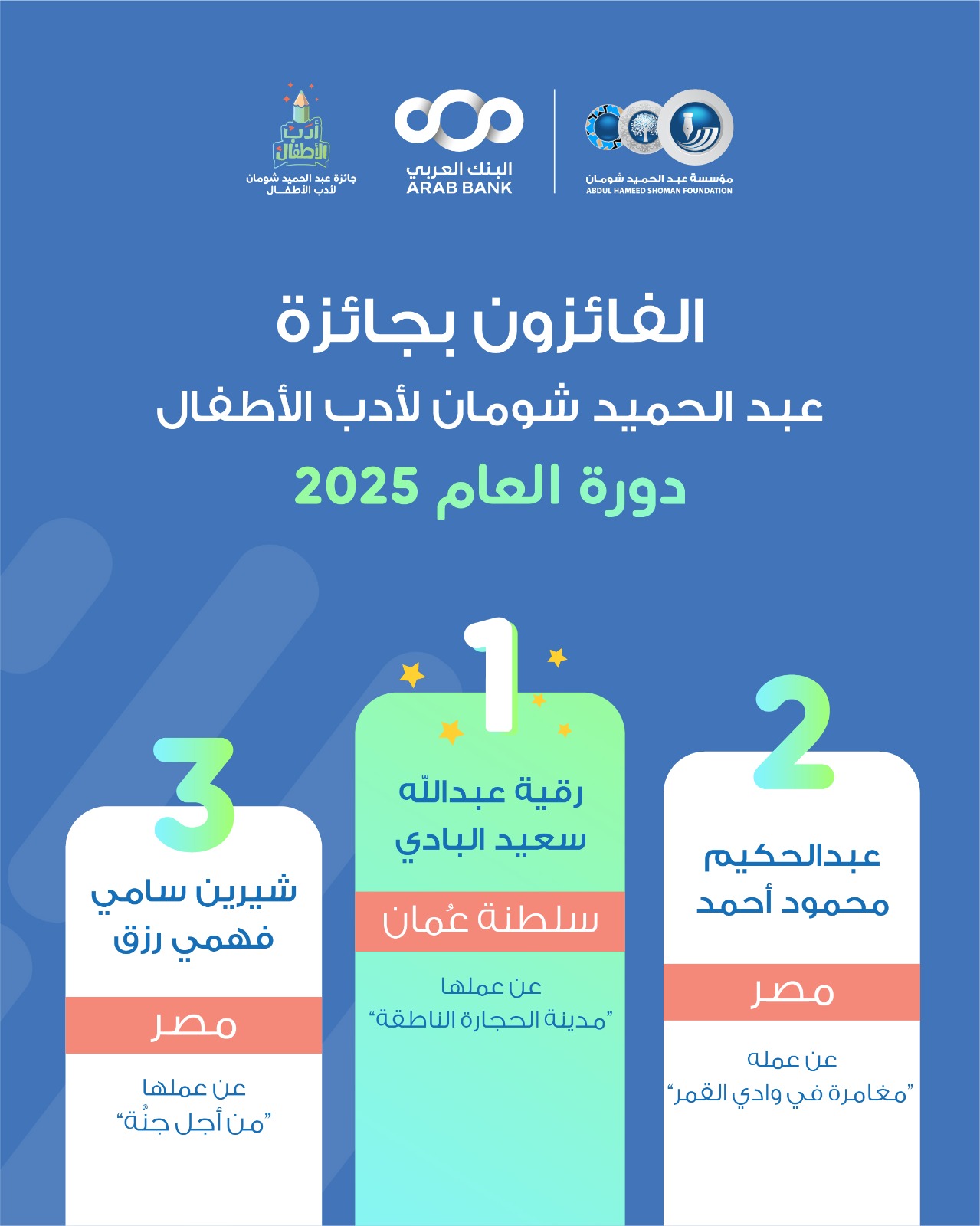 "شومان" تعلن الفائزين الثلاثة بجائزة أدب الأطفال