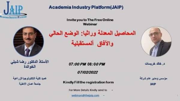 أ.د. رضا الخوالدة في ندوة حوارية لشركة (JAIP) عبر منصة زووم حول المحاصيل المعدلة وراثيا