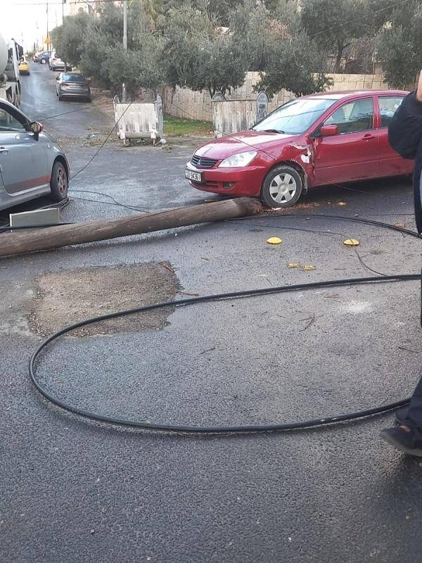 سقوط عمود على عدد من المركبات بطبربور