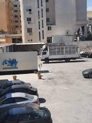 شاحنتان تنتظران في موقف " الرأي " لحجز أثاث الموسسة لصالح احد الدائنين